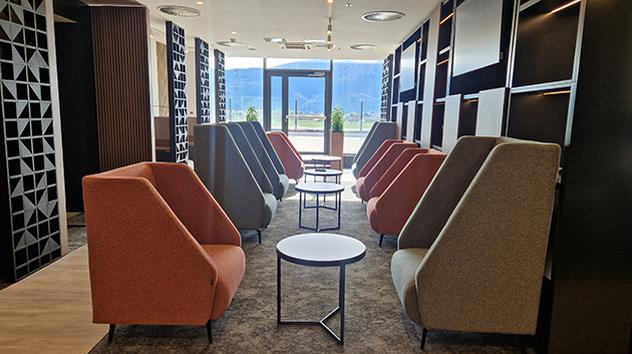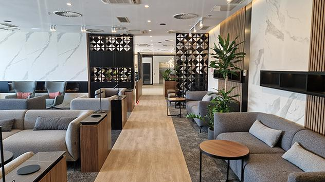 Зона после паспортного контроля — вход в бизнес-зал в зоне выхода на посадку. Проследуйте на лифте или по лестнице на 2-й этаж и следуйте указателям к бизнес-залу. Только для пассажиров международных рейсов.