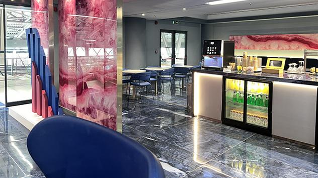 Зона после паспортного контроля — после зоны досмотра поверните направо и пройдите магазины беспошлинной торговли. Поднимитесь по лестнице напротив выхода 12 на следующий этаж.