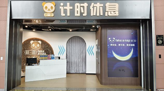 Landseitig - Ankunftshalle, 2. Etage. Take a nap befindet sich 100 Meter links vom Ausgang B2 in der Ankunftshalle.