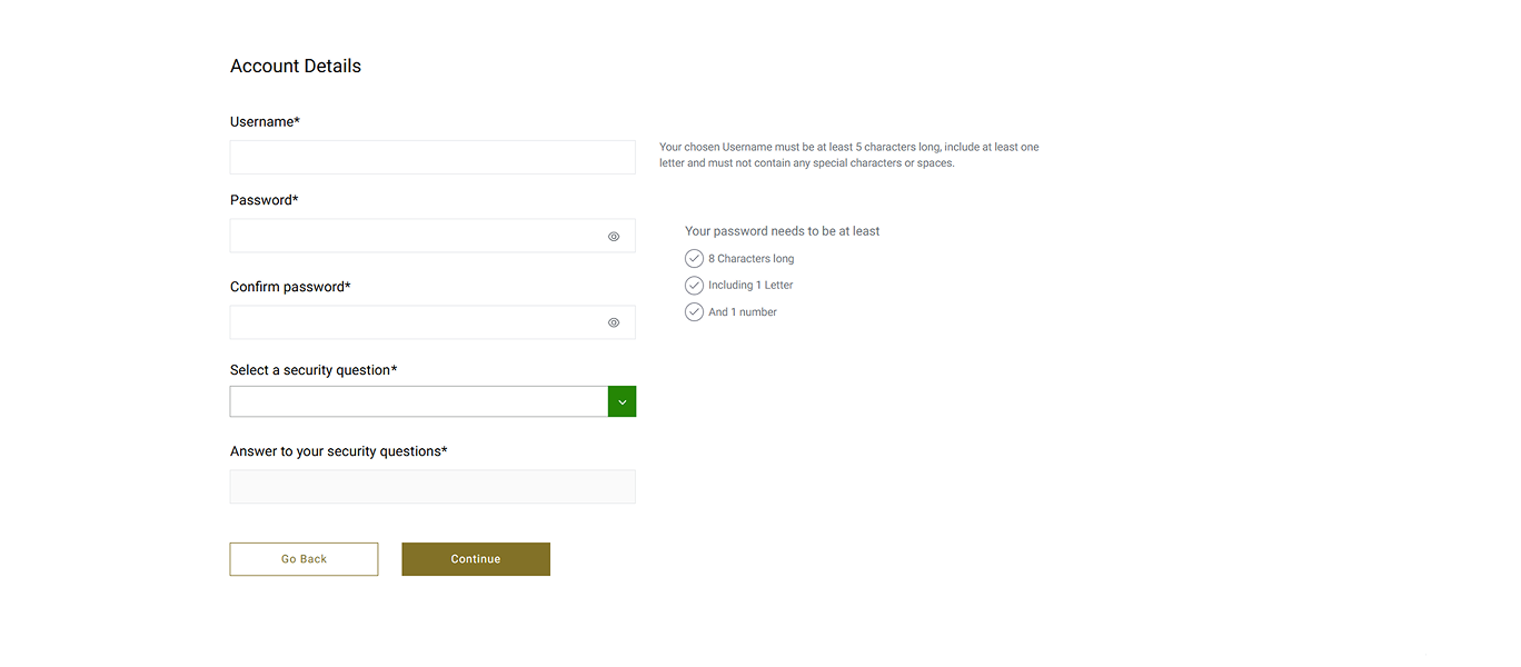 4. You will then be asked to create a Username and a Password, which must be a minimum of 8 alphanumeric characters. If the chosen Username is already in use you will be asked to provide an alternative. 5. Please choose a security question from the drop down list and provide the answer in the cell below. 6. Enter your email address. 7. You can also read how we manage your data and how you can update your communication preferences. 8. Finally, Read and accept the Membership Declaration. 9. When all fields have been completed select Create Account. The account creation is now complete and you will be able to access your personal online account.