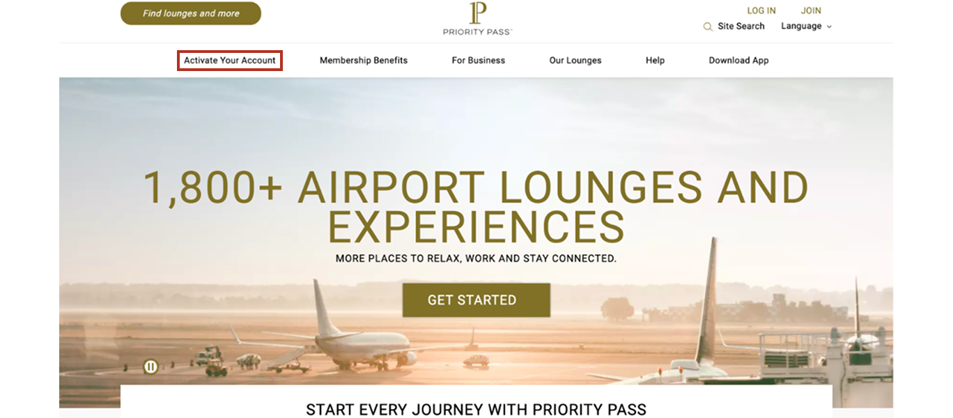 1. Go to prioritypass.com and click Activate Your Account in the menu bar.