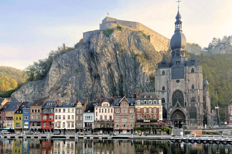Dinant’s riverside charm is best enjoyed in warm weather, with boat rides and outdoor dining along the Meuse River.