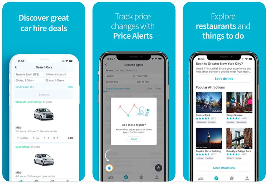 This app is the ultimate go-to for travellers. With its simple and user-friendly interface, you can search and compare prices across hundreds of airlines to find the cheapest flight possible. The app provides price alerts, which notifies users when prices change, and they can get the best deals on flights, and you can even set alerts for when prices drop and easily book your flights without ever leaving the app.