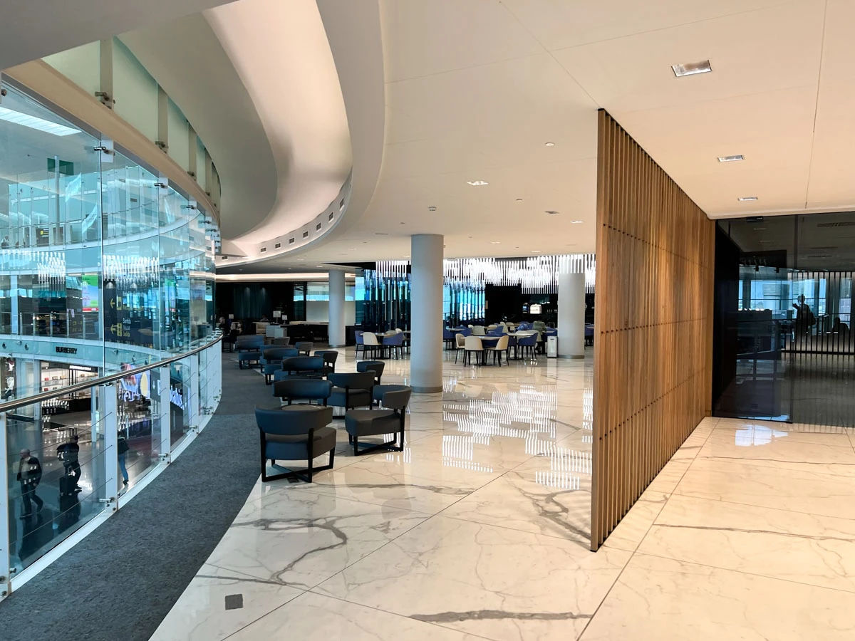 Floor to ceiling windows are displayed throughout the lounge, although unfortunately they only overlook the main terminal concourse and do not have runway or airport views, which is a real shame.