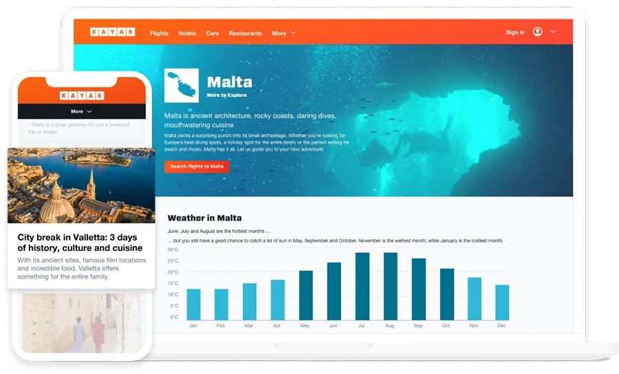 Kayaks “Explore” feature is our favourite for those who have flexibility with their travel dates and are looking for the best deals. In addition to flights Kayak also searches various travel sites to offer users the best deals on hotels, and rental cars too. Finally, you can also sign up for Kayak's email list to receive their Private Deals, which can save you up to 35%.
