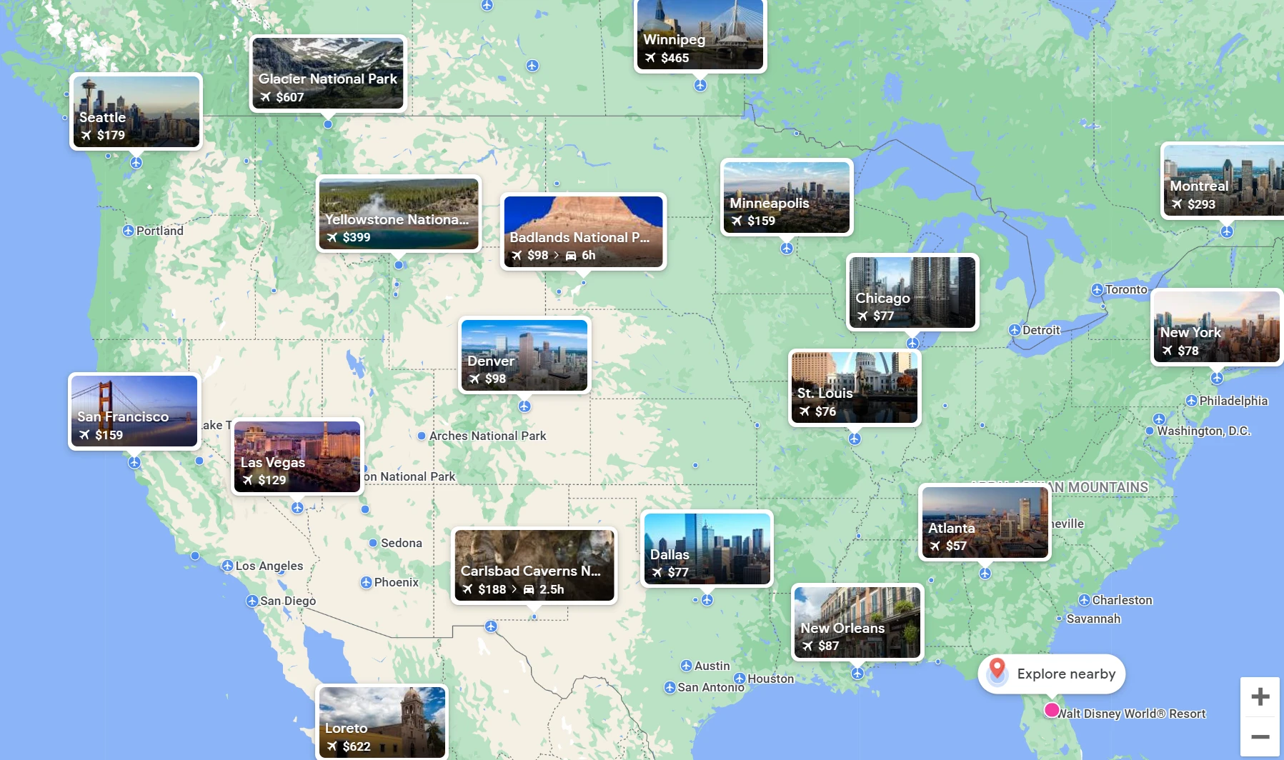 Explore Map: Discover the cheapest places to fly to based on your selected dates.
