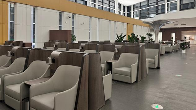Sala odlotów po przejściu kontroli bezpieczeństwa - Odloty krajowe, 3. piętro. Salon znajduje się naprzeciw stanowisk kontroli bezpieczeństwa 12–14 Tylko pasażerowie odlatujący