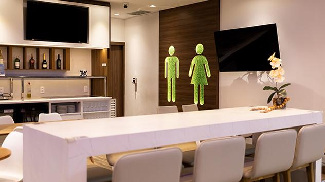 É permitida uma criança menor de 12 anos de idade gratuitamente por adulto - Área silenciosa disponível – Área de entretenimento para crianças separada disponível – Estações de trabalho disponíveis.
