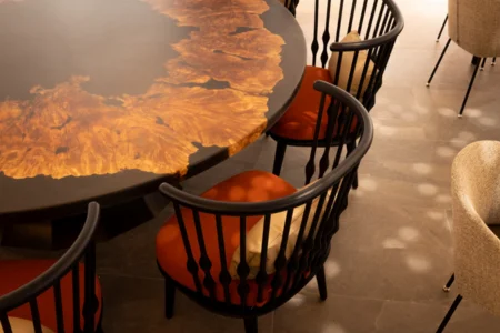 The dining area showcases the best of Northern California. Enjoy farm-fresh cuisine at the community table, crafted from a sustainably sourced mammoth tree slice. Ingredients and wines sourced from local suppliers, Foley Family Wines to give you a taste of the local cuisine. Recipes for Chef Action Station will also be provided by Foley Family Wines, ensuring a delightful and authentic culinary experience.